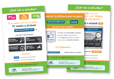 Una campaña para convocar a esta exposición, basada en carteles simples, de colores llamativos, y una serie de spots de radio con mensajes diferenciados para los jóvenes en las distintas situaciones respecto a su decisión vocacional: “ni idea”, “no me decido” y “la tengo clara”.