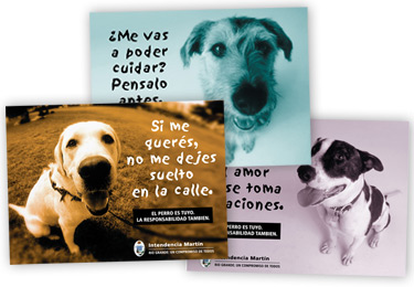 Los perros hablando a sus dueños fue el concepto central de esta campaña de la Municipalidad, que tuvo como objetivo frenar el abandono habitual de las mascotas en la vía pública. Para los spots de TV, por ejemplo, utilizamos ladridos subtitulados, y la campaña incluyó también vía pública y folletería informativa.