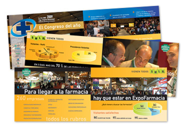 Con fuerte presencia de imágenes y estadísticas, esta brochure presenta la exposición líder del sector, con 20 ediciones, a través de una estética contemporánea y sobria, adecuada para el mercado farmacéutico.