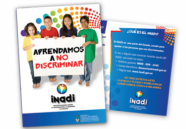 Un sistema para las publicaciones de Instituto que incluye un libro anual de gestión, además de libros y folletos temáticos referidos a los diferentes tipos de discriminación. Una estética que conjuga la institucionalidad del estado con la diversidad que promueve el INADI.
